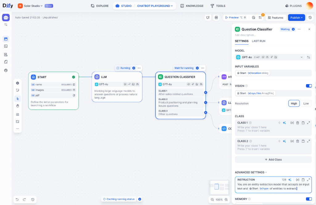 DifyというAIツールをご存じでしょうか?こんな感じで、仕事をワークフローとして仕組み化することができます。
